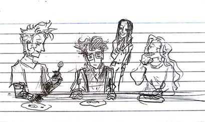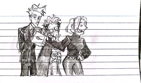 Throughout the course of the in-person roleplay campaigns run by my partner in this project, Darragh, I made a series of sketches on flashcards. These sketches were an easy way for me to dramatise the goings on in the session and later served as character studies as I moved to build the final work. Sadly I was unable to access many of my sketches from the previous campaign, however, I did manage to scan a large batch of more recent images, these can be found below.